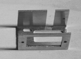 Die haben wir dann mit unserem 3D-Drucker auch gefunden! Nach erstellen der CAD-Konstruktion und einigen Druck-Versuchen war das Ergebnis für uns perfekt. Die Halterung ist so konstruiert, daß neben dem Servolager auch die passgenauen Montagelöcher für den Mikroschalter, das Lager für den Stelldraht und die vier Löcher für die Drahtbügel zur Montage an der Weiche eingearbeitet sind. Die Befestigung an der Weiche erfolgt mit zwei 0,8 mm Messingdrahtbügeln welche von unten in die in den Peco-Weichen vorhandenen Montagelöcher für den Doppelspulenantrieb eingesteckt und dann oben umgebogen werden. Die gesamte Weiche kann so ausserhalb der Anlage komplett aufgebaut, justiert und geprüft werden und dann als funktionierende Einheit in der Anlage verbaut werden.